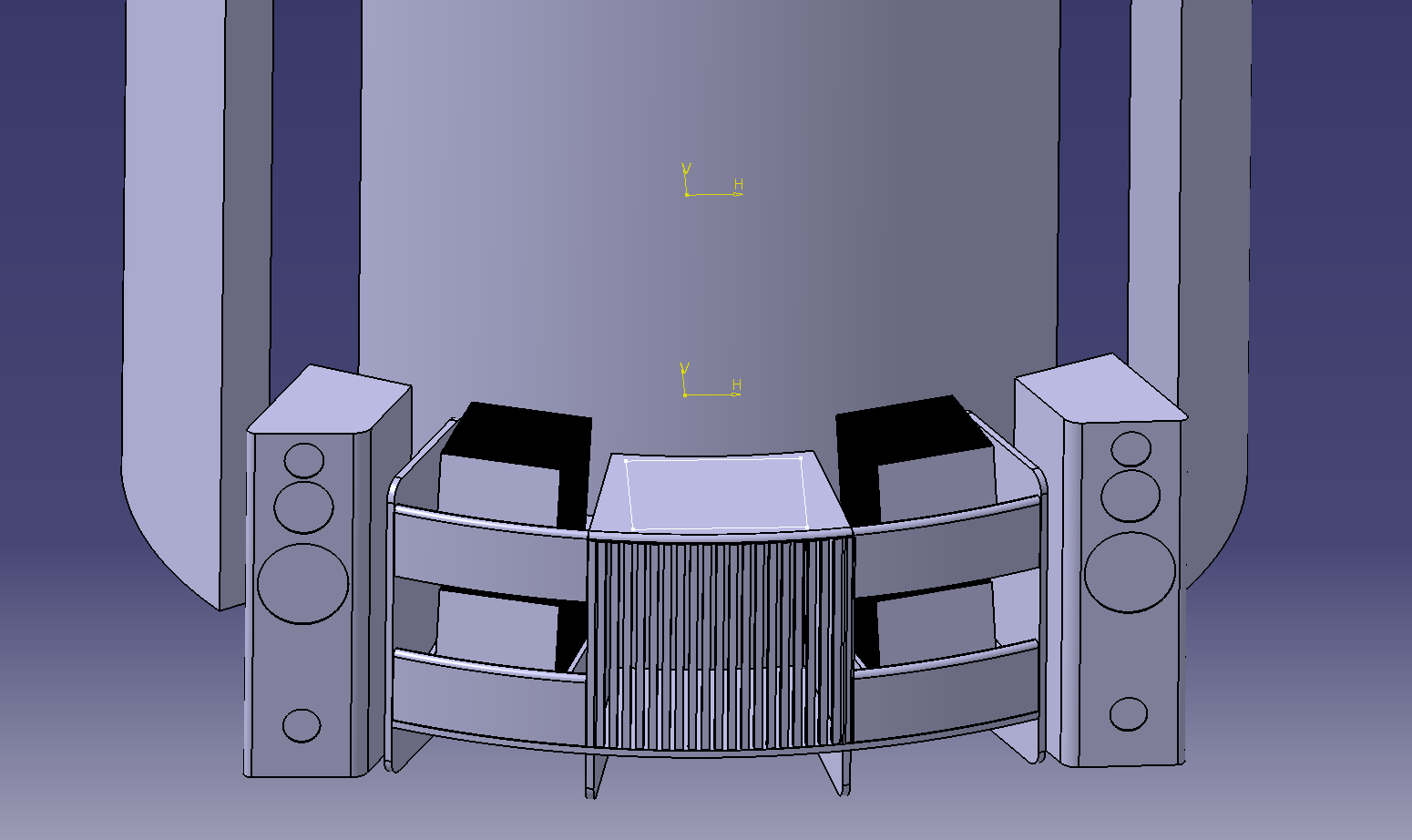 so eine schräge Rückwand der Boxen ist nicht nachteilig, im Gegenteil. Du könntest aber auch eine normale Box mit schönem Rücken bauen und so anwinkeln, dass die Fronten parallel zur Hörebene ausgerichtet sind, so wie in deinem neuen 3D-Bild. Ich sehe das Hauptproblem dann potenziell darin, dass die Boxen bei dir in relativ kurzer Distanz gegen eine nackte Glasfront spielen würden. Dagegen helfen Vorhänge, die aber in modernen Wohnkonzepten meist unerwünscht sind.