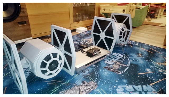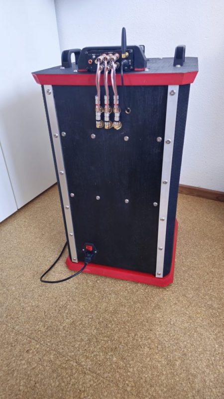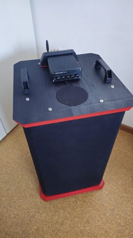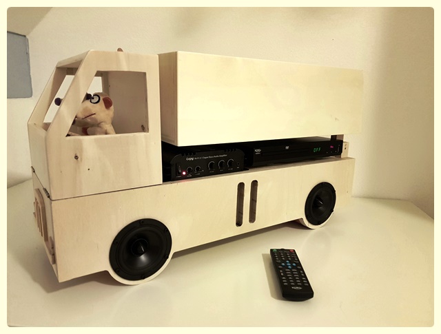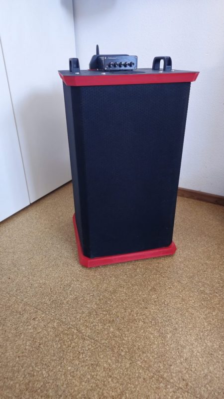 die Partybox aus RS100 und U-Do-Sub-7 ist fertig. Als Verstärker habe ich den 2.1-Amp aus dem Bericht zur U-D041-7 genommen. Die Kombination funktioniert wirklich gut. Macht auch dem Junior Freude. Das ganze sollte bisschen teschnisch aussehen und ein wenig nach Star Wars! Technisch, ja. Star wars, naja!