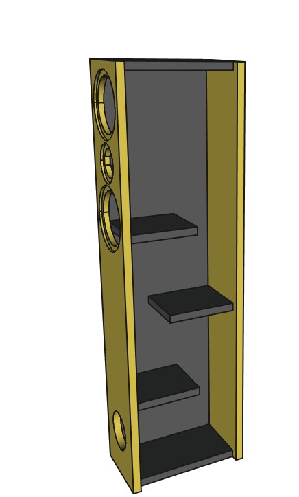 eine ACL ist ein viel zu großes Gehäuse, in das ich durch die Kammeraufteilung und die Durchgangsflächen die nötige Rückstellkraft für die Bässe eingebaut habe. Hierbei spielen kleine Verschiebungen keine wirkliche Rolle, das Bauprinzip ist recht tolerant. Zwar ist die Faustregel: Obere Kammer halb so groß wie die drei folgenden zusammen. Doch wenn das Trennbrett im Chassisausschnitt steht, darf es auch um 3 cm nach unten rutschen. Zum Ausgleich kannst du nun auch das mittlere Brett um 2 cm und das untere um 1 cm runtersetzen. Das kannst du aber auch genauso gut lassen, es ändert sich nichts für das Ohr. Ganz ehrlich weiß ich nicht einmal, ob ich es messen könnte. Das Reflexrohr muss nicht geändert werden.